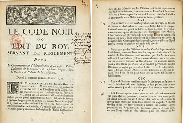 The Code Noir de 1724, developed specifically for la Louisiane differed