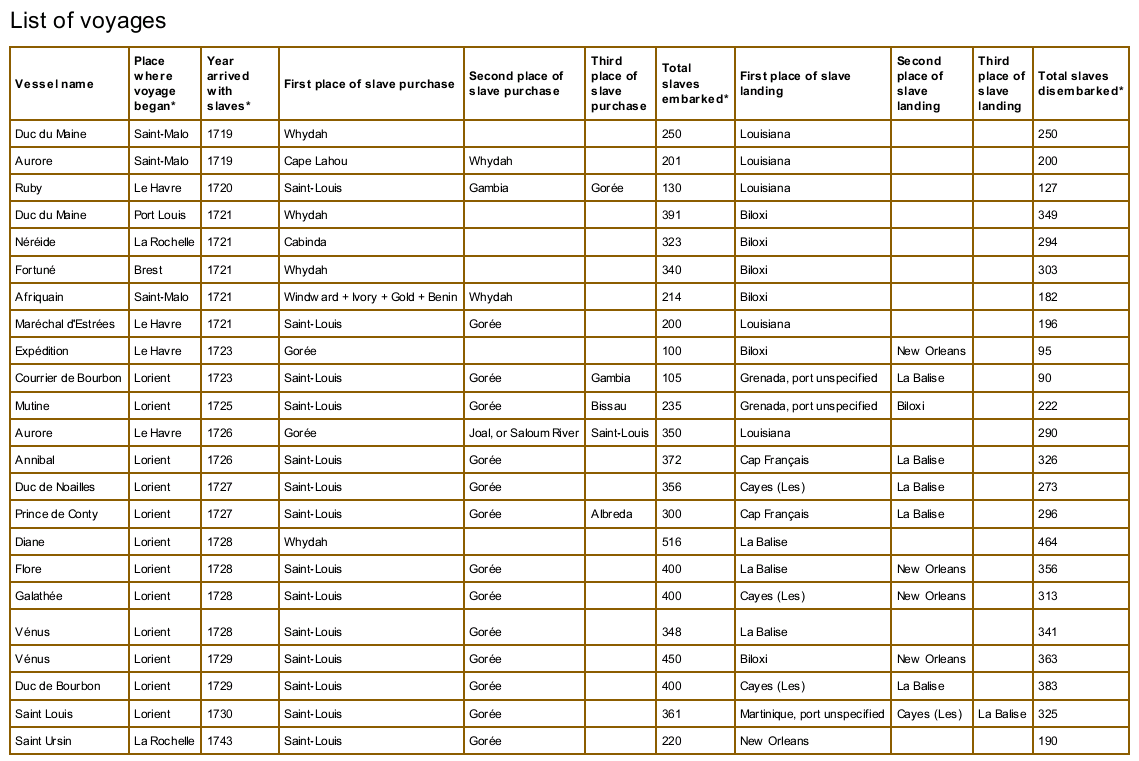 Slave Voyages to French Louisiana Voyages: The Trans-Atlantic Slave Trade Database.