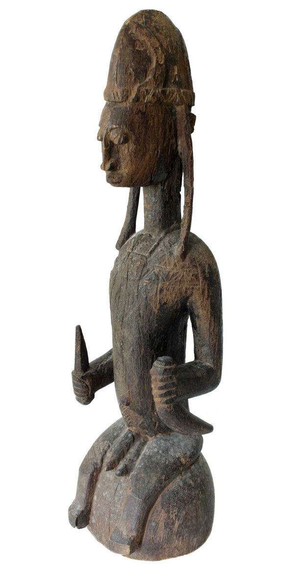 Female Figure Small figures are brought out from their shrines for public display at annual celebrations of the jo society, a sect associated with human fertility. A young girl who has been initiated into adulthood carries a figure as a fertility charm, during dance performances.