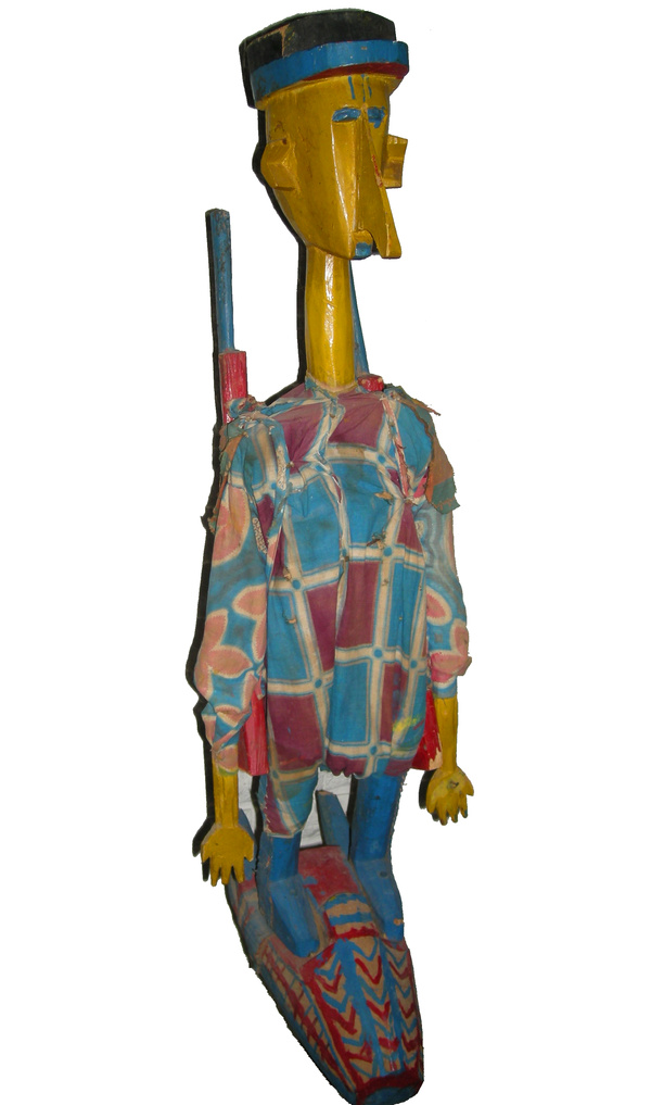 Bambara Marionette The colonial marionette represents the warning of foreign powers invading the Bambara (Bamana) tradition. This would include the European as well as the Islamic influence. Performed as a warning to the young. |